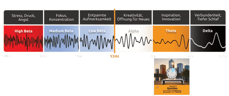 Quicklax holt Dein Gehirn gezielt aus Stress, Druck und Angst, Unsere patentierte Führung der Gehirnfrequenz bringt Dich in kürzester Zeit in die tiefe Entspannung.